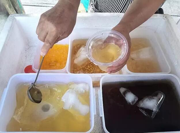 烈日炎炎的午后吃一碗加了蜂蜜、糖水的冻菜,顿时暑意全无,浑身凉爽。这一份两元的消暑小食在赛岐非常受欢迎。宁德市区倒是很少有看到卖这个,记得前段时间在南门兜见到有人卖,也是大排长龙。