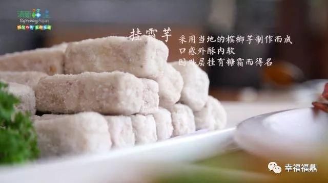 说起“挂霜芋”,不能不介绍其特殊的原料——位列“福鼎三宝”之首的福鼎芋。据史料记载,福鼎芋在福鼎市栽培已有近300年的历史,属天南星科魁芋类,母芋呈圆柱形,芋肉乳白色带紫红色槟榔花纹,故又名“福鼎槟榔芋”。