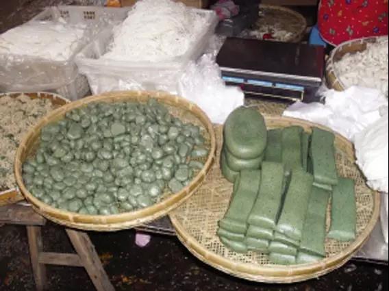 别具一格的“鼠曲粿”,其主料是粳米,辅料则是鼠曲草。“鼠曲粿”传统的制作方法就是将采到的鼠曲草,洗净去根,焯水后,沥干水份切碎。然后与已蒸熟的热粳米放在石臼中捣成粿团再压制成块即可。