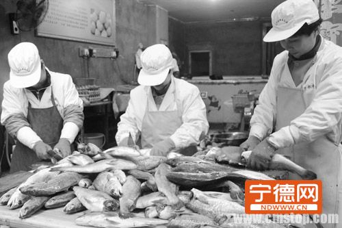 “老板,给我称3斤包心鱼丸”、“我要2斤鱼饺”……2月24日,大年初六,一大早,位于霞浦县三沙镇农贸市场大门边的永寿鱼丸店外,就围满了许多前来购买鱼丸的顾客。“从初二开门营业,天天大都是这般热闹情形。”店老板刘永寿笑着说。