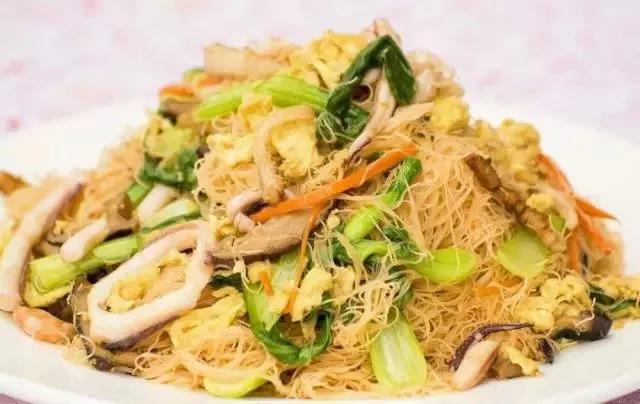 先将其泡软,以若干配料加足量油热炒,配料包含:卷心菜、香菇、猪肉及胡萝卜丝,不同季节可以加入不同的时令蔬菜,与霞浦特色又新鲜的虾仁、沙蛤搭配焖煮,能使米粉柔软可口,鲜美的米粉海鲜汤营养又美味。