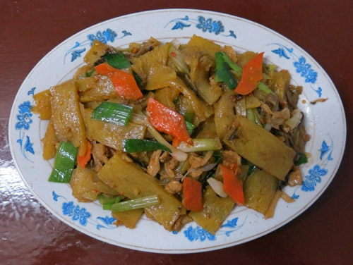 土豆粿的制作方法比较简单,将土豆煮熟后,剥去皮拍成泥,和磨细了的地瓜粉一起,和水揉匀,摊开碾压成饼状,就制成了。烹调法与其他粿食相似,烹饪前将粿饼切成约2厘米宽的薄片,加上酸菜、青菜、肉末、虾米、豆瓣酱、辣椒等配料,炒制、煮食均可。其口感爽滑,酸辣适中,还能吃出土豆的清甜。有诗为赞:“温温软玉暗浮香,脱却轻纱慢品尝。片饼丸丝无尽味,消愁助兴任飞觞”。