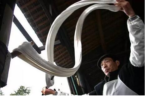 “拉糖”(割稻糖)——周宁古法的拉糖工艺发源于清朝康熙年间。传统做法是把糯米、麦芽等原材料熬成糖稀,加入切碎的姜末再煮一段时间,把糖稀倒在木板上等待冷却。当糖稀已经凝固成半流质的时候,把一大团糖稀放在个大铁钩上反复地拉,然后取下来再拉成大指拇粗的小条。等糖冷却完全变硬后弄成小块状即可。旧时,拉糖艺人在收割稻谷期间,行走于田垄间叫卖,所以“拉糖”又叫“割稻糖”。