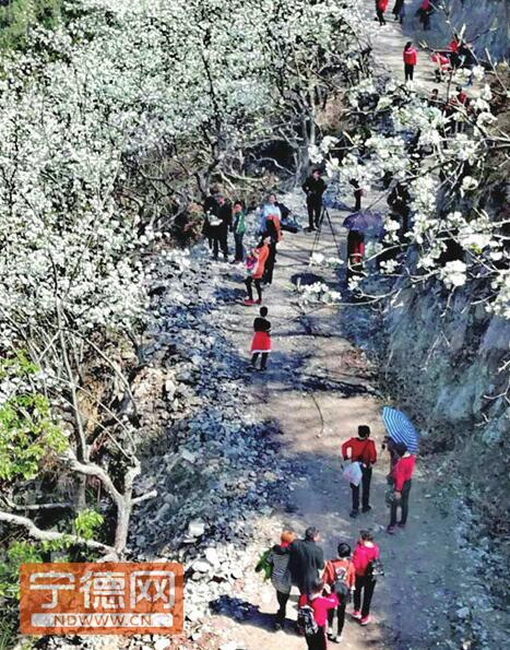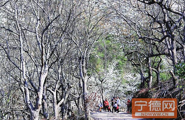 笔者在现场看到,沿着机耕路漫步梨园,前后左右成片的洁白梨花,一簇簇,一层层,好似挂满枝头的皑皑白雪,蜜蜂在花丛中翩翩起舞,微风吹过,阵阵花香,沁人心脾。雪白的梨花下是梨树千姿百态的树干,似鲲鹏展翅,如骏马扬蹄,也如纤纤少女……在花海间的小道上驻足远眺,还可见下方蜿蜒的梯田,翠绿的茶园中茶农采茶的身影;巍峨的远山下,碧绿的溪水缓缓流淌;溪流两岸,高楼林立。如此山光水色,小桥人家,怎一个惬意了得!