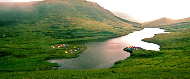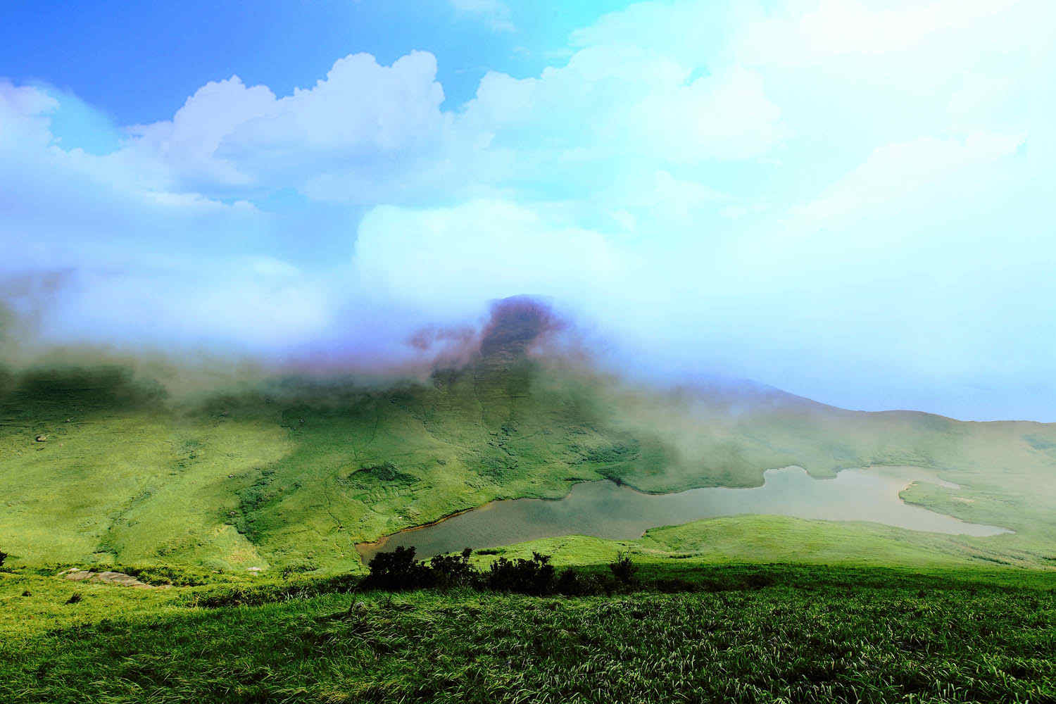 湖是山的眼睛。一座山有了湖,就像青春少女有了一双明眸善睐的眼睛,瞬间有了神采。嵛山岛非常奢侈地拥有三汪清清亮亮的天湖,当地人给了个好听的名字“天鹅湖”。遇见天湖的当时,我正欣欣然地漫不经心地在绿海中徜徉着,恍惚间,一抹艳艳的冷蓝从绿色山涧中跃出,远远望去,像一面明晃晃的镜子。波光滟滟生紫烟,蛙声阵阵唱恬静,天鹅湖是秀美的,她的秀美是闽东水土的钟灵之气与嵛山岛毓秀之姿酿就而成的。棱罗在《湖滨散记》中这样地写道:“一个湖,是风景中最美丽、最有表情的景色,望着它的人,可以量出自己天性中的深浅。”如今,望着这深山幽谷中的天鹅湖,我心悠悠如水宁静。这里的水是如此清幽,似盘古开天后的第一汪清泉,清纯冷峭沁入心脾,又会牵起你心头缠缠绵绵的丝丝柔情,面对这样一种的真情禅意,我不能神醉心驰,魂不守舍,掬一捧湖水在手心,清冽沁凉入心入肺;聆听蛙声一片,禅意悟境穿透生命。心想,若能在湖畔搭草屋而居,晴天观云,雨天听雨,晨起饮露,夜摘星粒,闲来品一盏香茗、握一卷唐诗,今生何求?
