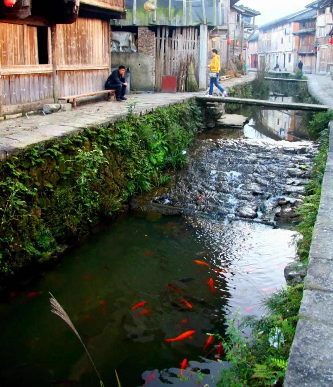 浦源村住着的800多户人家,是南宋嘉定年间从河南荥阳迁徙而来的郑氏后裔。相传,为了防止饮用水源被污染或投毒,聪明的郑氏祖先就在溪流中放养鲤鱼,一则去污澄清,二则预防外人投毒,这鱼儿便成了村人饮用水的“哨兵”和“守护神”。