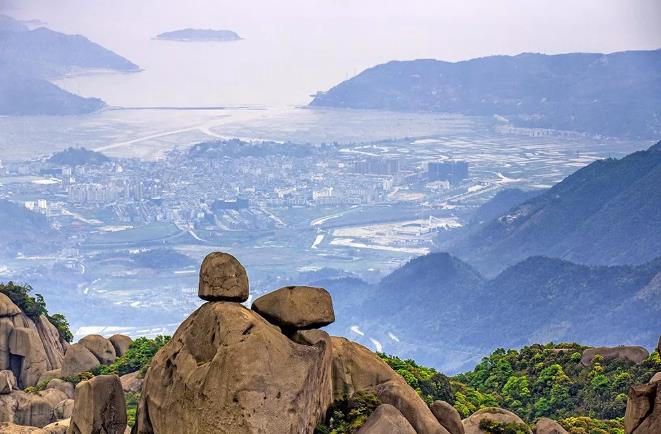 每一座山峰都高矗着巨大的花岗岩。每一块花岗岩都是一件雕塑艺术品。云蒸霞蔚的天空作衬布,杂花生树的山体作底座。由于天气变化,衬布和底座的色调瞬息万变,置于其间的花岗岩群雕,晨似美女暮似怪,横看如人侧如剑,变纪无穷,多彩多姿。大自然这位天才的雕塑大师,也许是现代派雕塑艺术的鼻祖。它不重具象重抽象,不重写实重写意,不重形似重神似。每一块石头都是多解或无解的谜,为欣赏主体提供了再想象再创作的广阔窨。“太姥无俗石,个个似神工。随人意所识,万象在胸中。”前人这首五绝,为太姥群雕作了最好的诠释。