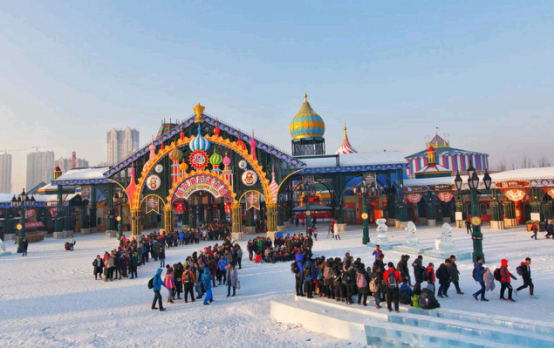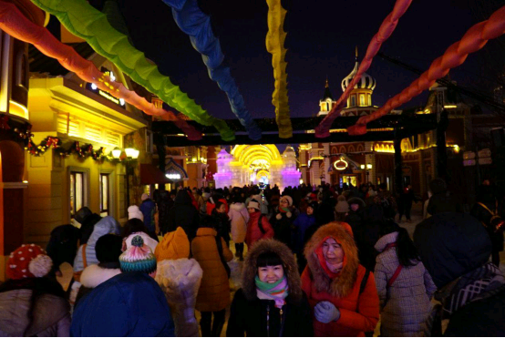 哈尔滨万达冰灯大世界立足本土文化根基,以打造互动式、沉浸式冰雪旅游产品作为满足人民日益增长美好生活需要的重要载体,弘扬冰雪文化,在传统冰雪项目基础上推陈出新,融合多元文化进行定制化创意营销,盛邀游客“赏梦幻冰灯,品国际美食,看绚丽歌舞”,完善冬季冰雪旅游产业链,拉动地域经济发展,积极推进我国由冰雪旅游大国转型成为冰雪旅游强国。