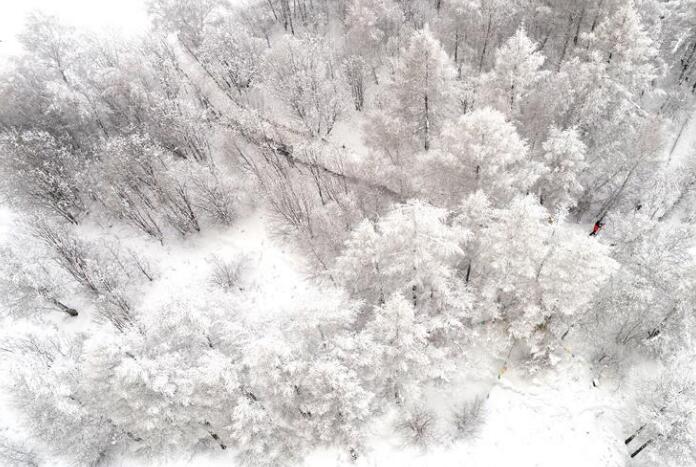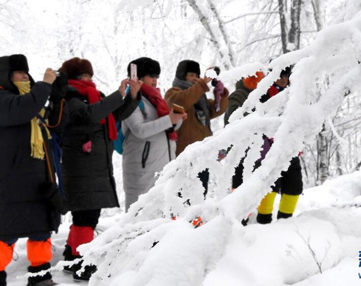 阿尔山市白狼岗雾凇景观(1月9日摄)。近日,内蒙古自治区阿尔山市白狼岗景区银装素裹,晶莹剔透的雾凇吸引了不少游客前来观光游览。 新华社记者刘磊摄