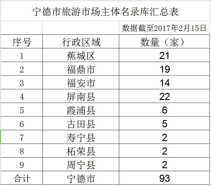 宁德市旅游市场主体名录库(按行政区域划分)公布稿